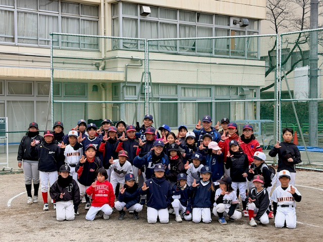 12月27日(土)、昨年に引き続き、埼玉西武ライオンズ・レディースで活躍する「千葉 愛希」選手、「舘 彩花」選手、「山崎 紗綾」選手を招き、加盟チーム女子選手を対象に野球教室が光が丘第七跡地グラウンドにて開催されました。 守備・打撃などの指導を受け、グラウンドには笑顔と笑い声が溢れていました。最後に記念撮影をしましたが、ライオンズ選手の腕にしがみついて離れない選手も。 西武ライオンズ・レディース選手の皆様、ご指導いただきありがとうございました。